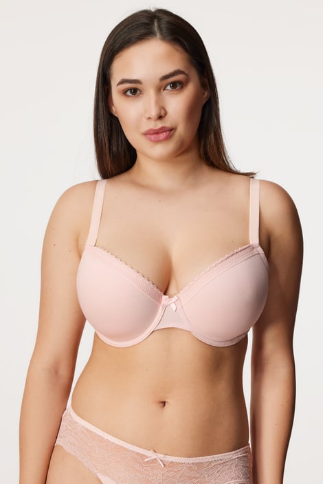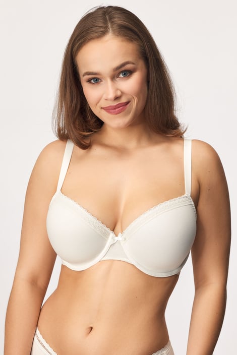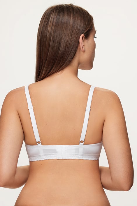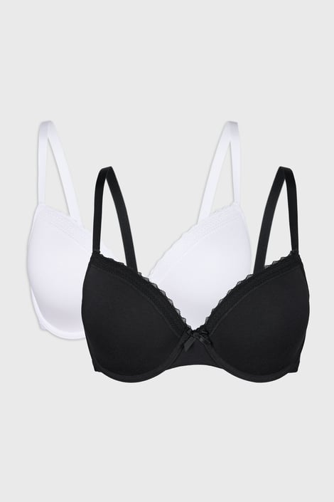 A dupla csomag szivacsos Lila I melltartó pamut kötött anyagból a nagyobb mellű nők számára is alkalmas. A sima kosarak egyszerű megjelenését apró csipkék egészítik ki a felső szélén és a pánt alján.