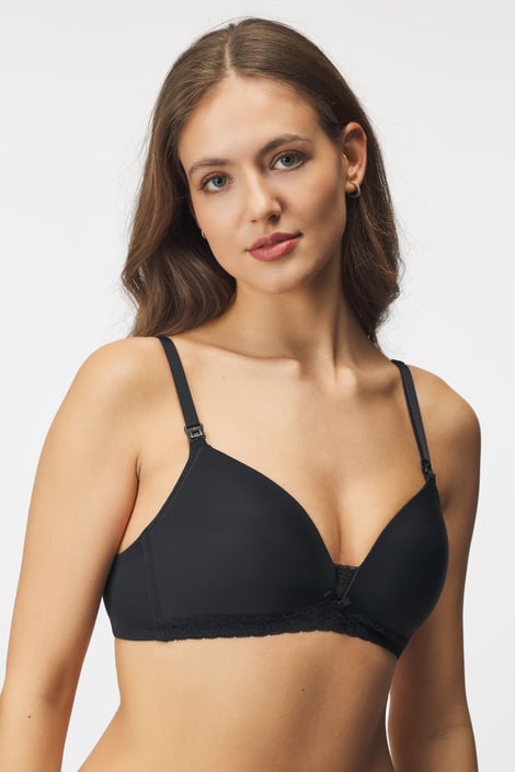May Eco merevítők nélküli, kényelmes szoptatós melltartó, 2 darab 1 csomagban. A bélelt, sima felületű kosarak felső része a könnyű szoptatásért lekapcsolható. Keblek alatt gyengéd csipkével díszítve.