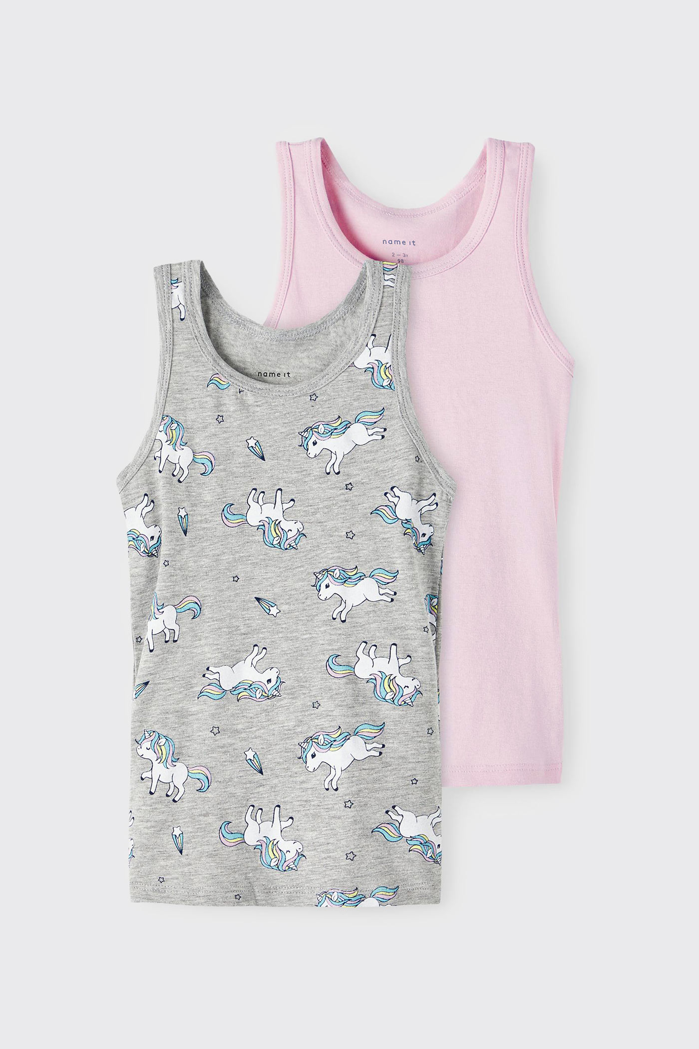 Name it Unicorn lány bugyi puha pamutból dupla csomagolásban. Lágy rózsaszínben és szürkében kis egyszarvúakkal díszített mintával.