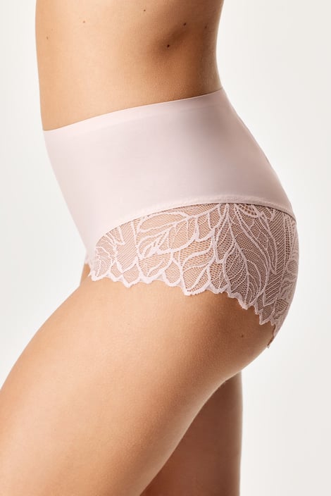 Francia szabású Pansy női alsó komfortos magas derékrésszel, amely elrejti és tartást ad a kevésbé feszes hasterületnek. A derékrész lézertechnológiával készült, ezért nem vágódik be a bőrbe. Sima felületű mikroszálas anyagból és finom csipkéből.