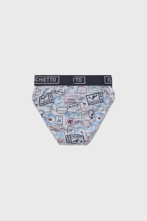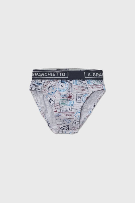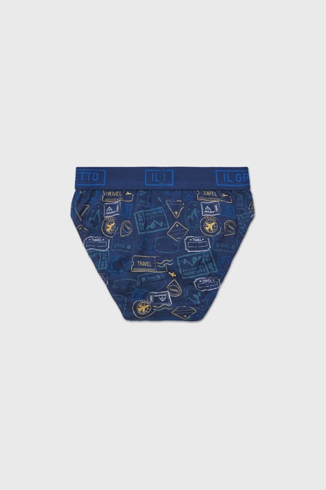 Pamut fiú alsó utazási motívumokkal, gazdaságos csomagban. Derékban a gyártó logójával díszített széles elasztikus gumival.