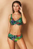 Az Acapulco II bikini a fekete szín és a színes trópusi minta kontrasztos kombinációjában. A merevítőkkel készült bikinifelső tökéletes támaszt biztosít a dús kebleknek, a T-alakú szabás pedig természetes gömbölyű formát. A klasszikus szabású bikinialsó kellemes viselet.