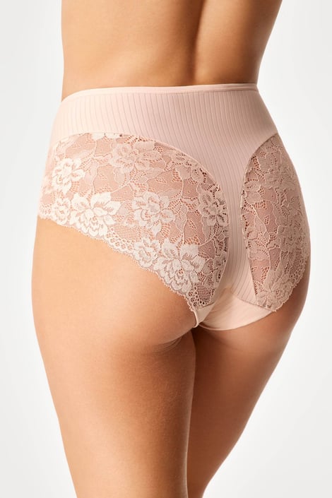 Anatomic klasszikus szabású női alsó, mikroszálas anyag és csipke v kombinációjában. A rafinált fazon látványra gömbölyíti a popsit, a magasabb derékrész pedig feszesíti a hasrészt. A női alsó ágyékrésze a maximális kényelemért kellemes pamut frottírból készült.