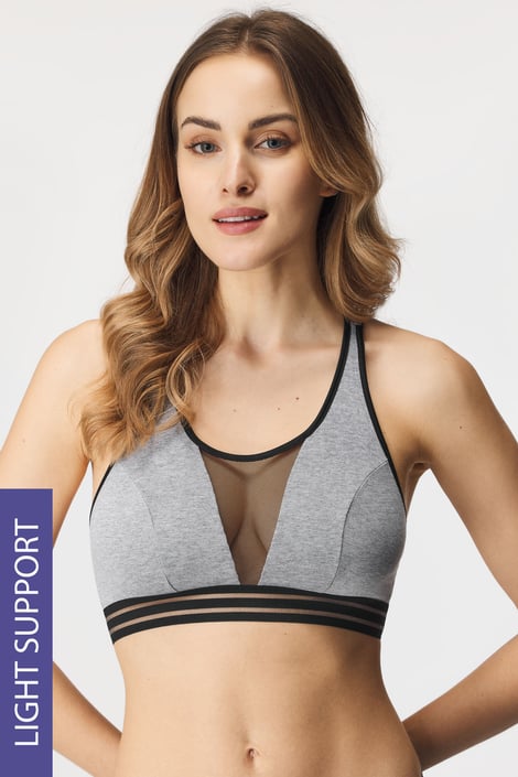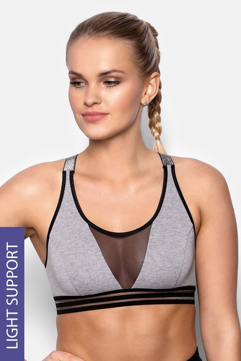 Sportoljon stílusosan, sportoláshoz viseljen Ariela sportmelltartót! A melltartó kellemes érintésű, légáteresztő viszkózból készült, kiválóan alkalmas jógához vagy pilates tornához. Keblek között necc anyagból. A vállpántok metál fényes, széles, elasztikus gumiból készültek.