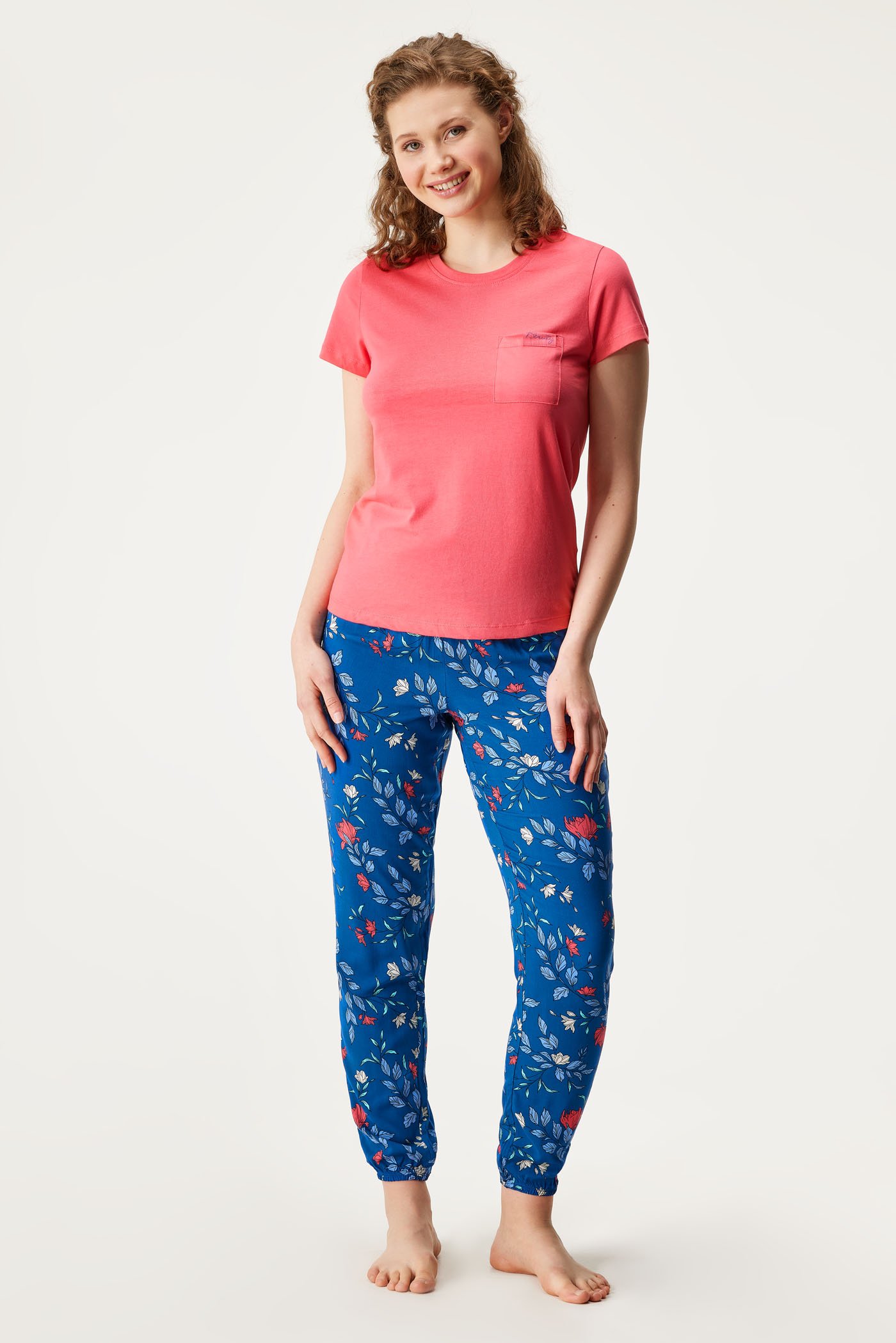 Az Ava pizsamát az éjszakai kényelemért tervezték. A póló 100%-os pamut anyagból készült, amely puha és érintésre kellemes, a hosszú pizsamanadrág a 100%-os viszkóznak köszönhetően rendkívül könnyed és lágy esésű.