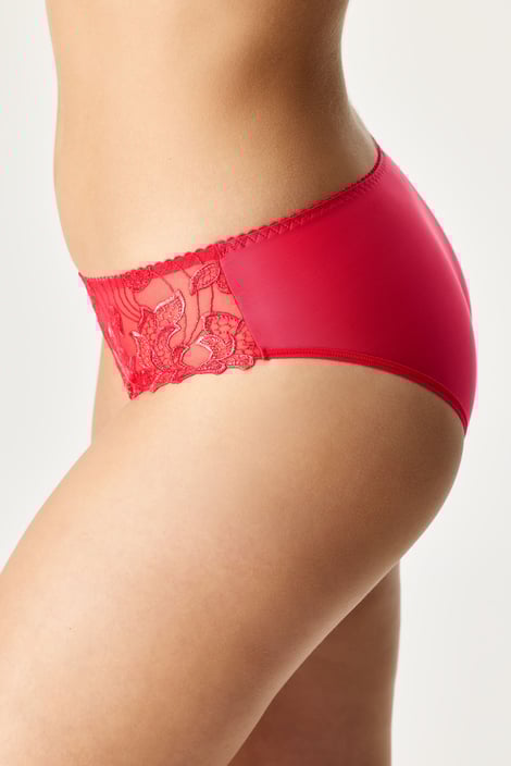 A klasszikus szabású Azalea I női alsó a fehérneműs fiókod gyöngyszeme lesz! Elülső oldala könnyed, decensen áttetsző hálós anyagból készült, amely finom virágmintás hímzéssel is díszített. A női alsó hátoldala tökéletesen sima felületű. Az Astratex divatműhelyében készült.