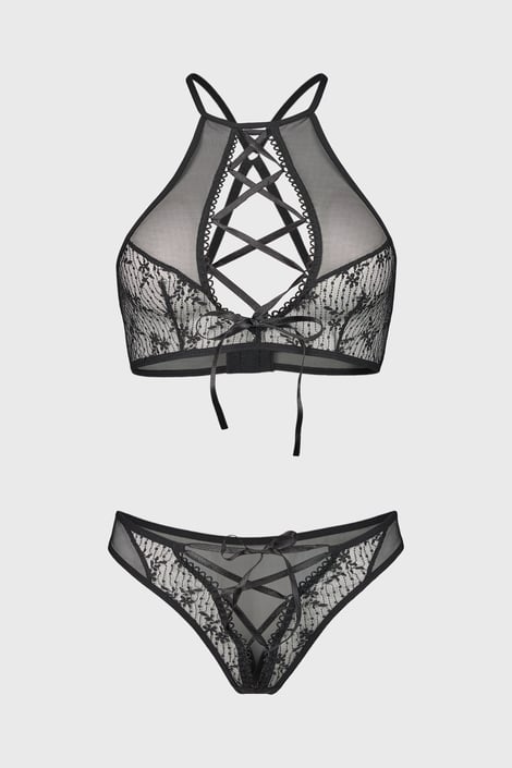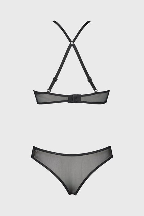 Lepd meg párodat a csábító Azalia szettben, amely rafináltan kihangsúlyozza a vonalaidat! A csipke és hálós anyag kombinációja érzékien áttetsző, a mutatós fűzés pedig erotikus hatást kölcsönöz a szettnek.