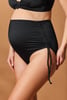Azzurra bikinialsó speciális szabásban, amely várandós kismamák számára és a szülés utáni időszakra tervezett. Az elülső rész belül erős elasztikus fürdőruha anyagból készült, amely átöleli a hasrészt és tartást ad. A csípőrészen lévő húzózsinórok segítségével könnyen szabályozható a combkivágások magassága.