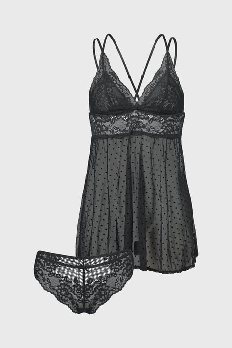 Az elegáns csipkéből és könnyed tüllből készült Hunkemöller Beatriz csábító szett az esti intim játékokhoz tervezett. Babydoll és előnyös brazil szabású női alsó.