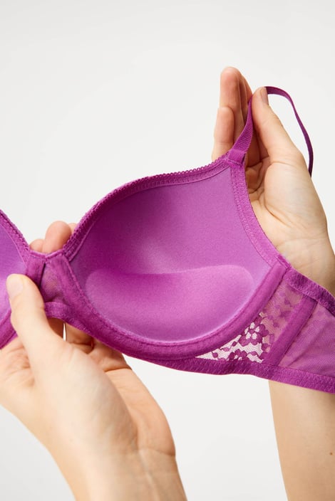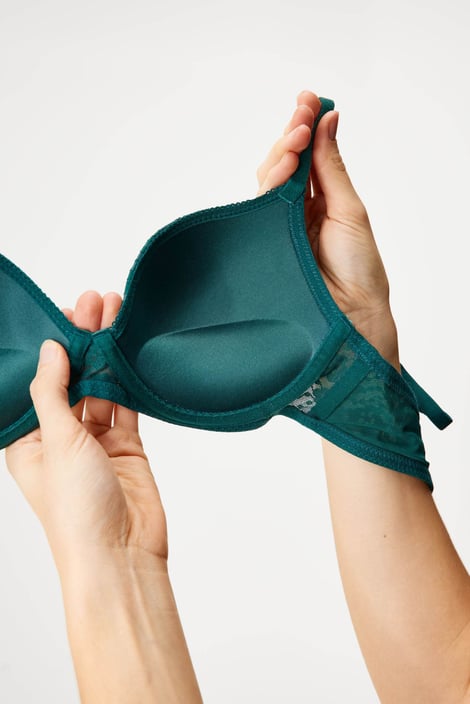 Nem létezik kis mell a Berry melltartóval. A push-up hatású, párnázott kosarak mindig gyönyörű dekoltázst varázsolnak. Finom virágos csipkével és állítható pántokkal.