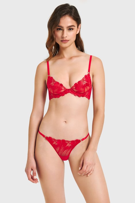 Bluebella Colette Red klasszikus bugyi finom mintás csipkéből. Látványos hasítékkal, amely kiemeli a fenekedet.