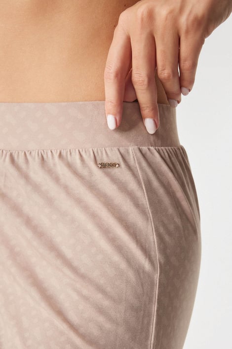 A BOSS prémium márka Logo pizsamanadrágja nagyon kellemes viszkózszövetből készült, diszkrét mintával. A rugalmas anyag és a laza szabás garantálja a legédesebb és zavartalan álmokat. Derékban széles, bevarrt gumival.