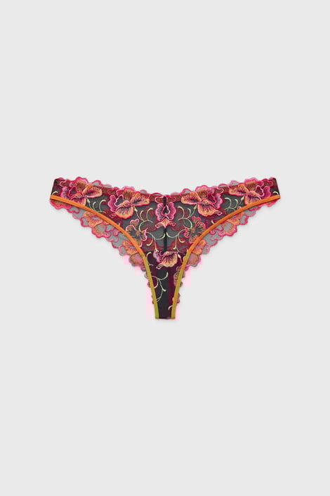 A Brillante Aura brazil bugyi a ruhatárad feltűnő részévé válik. Finom, fekete tüllből készült, amelyet kontrasztos virághímzés díszít. A brazil szabás szépen kerekíti a popsit. Az Astratex szakemberei által tervezve.