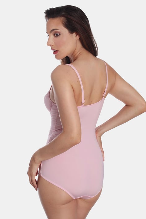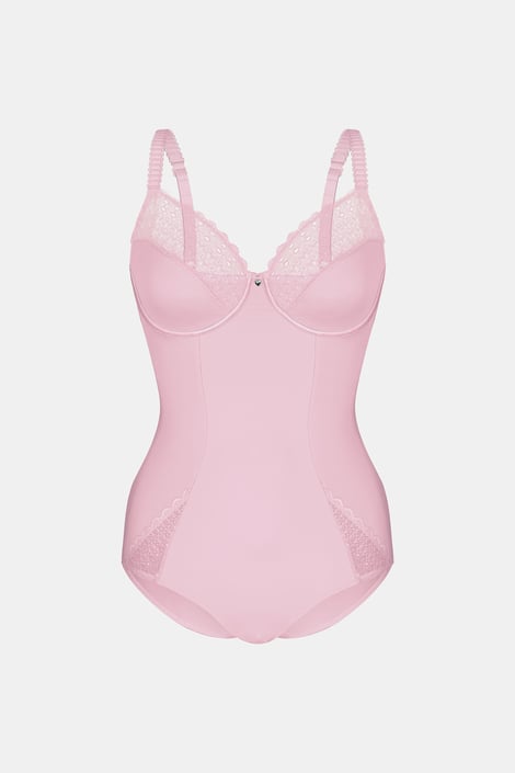 Britney elegáns női body díszített vállpántokkal. A bélés nélküli kosarak álomszép csipkével, a vállpántok hímzéssel díszítettek. Hasrészen rugalmas mikroszálas anyagból és finom tüllből az apró alakhibák korrigálásáért.