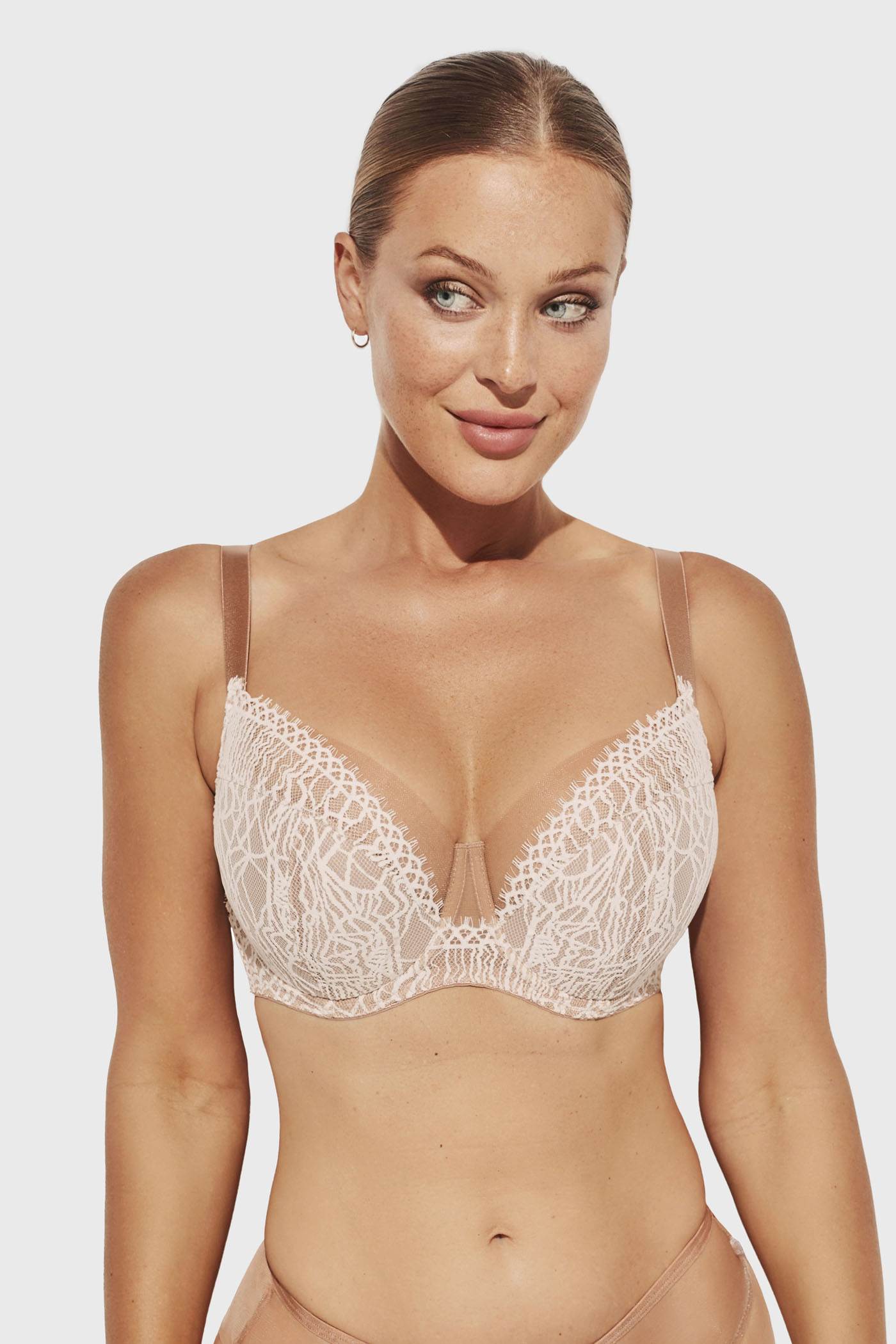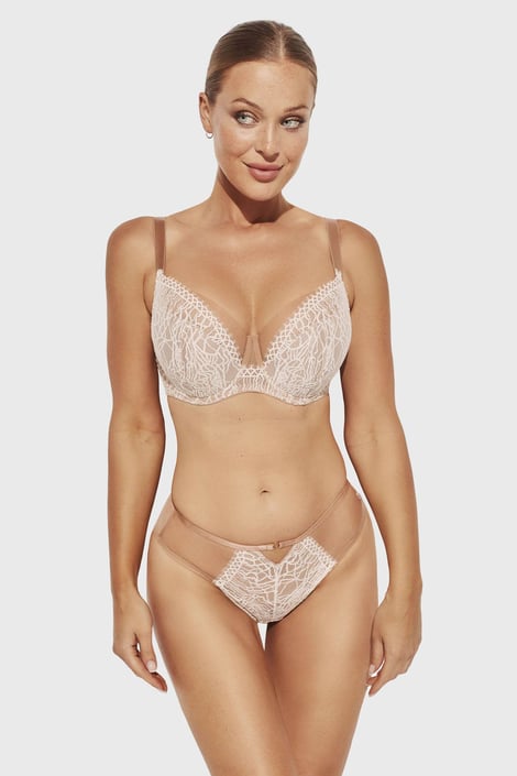 A Coco II melltartó egy luxus fehérnemű dekoltázsod számára. A puha anyaggal bélelt kosarak külső oldala leheletkönnyű csipkéből készült, amely a testszínű tüllel kombinálva nagyon jól mutat. Az aranyszínű fényes vállpántok elegáns megjelenést kölcsönöznek.