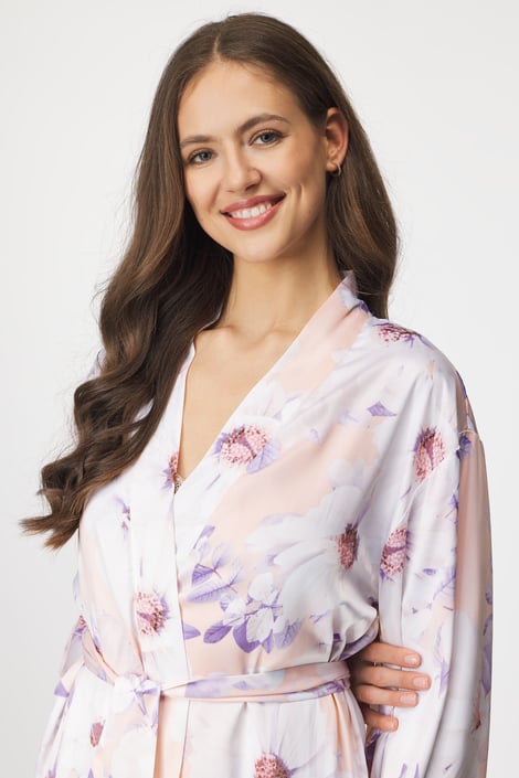 Könnyed szaténból készült Hunkemöller Daisy kimonó, amely lágyan követi a test vonalait. Gyengéd virágmintás dizájnban.