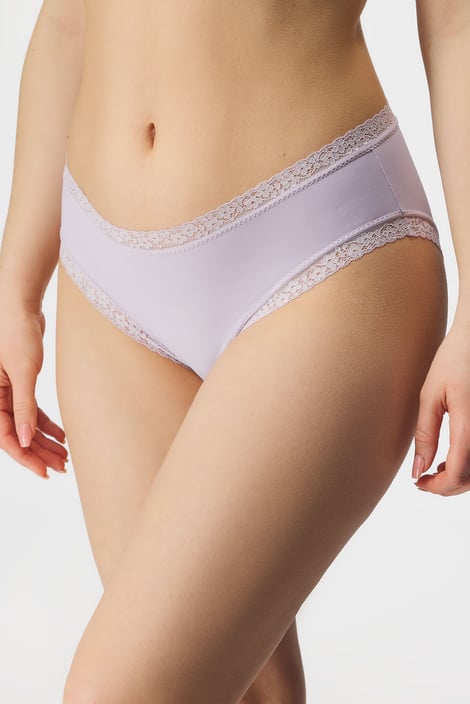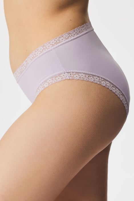 Dania női alsó, klasszikus szabásban, finom lila színárnyalatban. A sima felületű mikroszálas anyag érintésre kellemes, és tökéletesen egybeolvad a testeddel. Derékban és combkivágásokon puha csipkével szegélyezve.