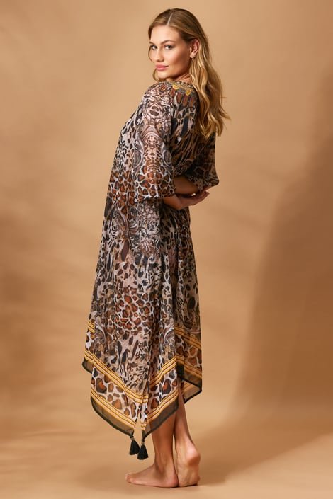 A Tango II strandtunika diszkréten elrejti a vonalaidat. A könnyed anyag a testen leheletkönnyű, és rendkívül szellős. A bővebb fazon kivételes kényelmet garantál. Apró kövekből álló, decens rátéttel díszítve.