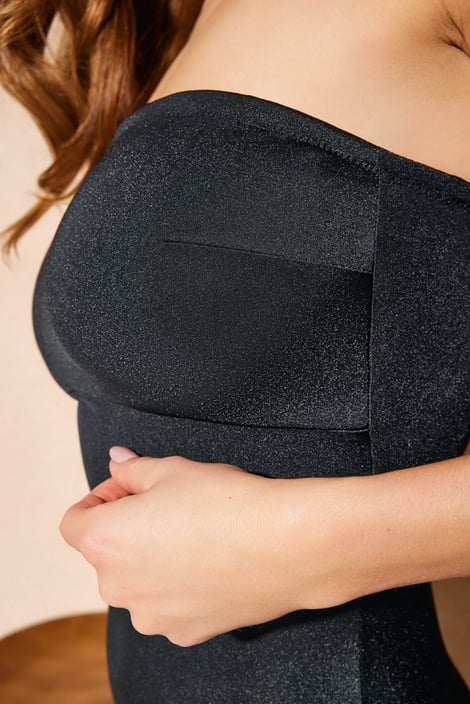 A DIVA by IVA Black egyrészes fürdőruha elöl bélelt, így optikailag kisimítja és tökéletessé teszi a sziluettet. A kosarak rejtett merevítőkkel biztosítják a tartást. A kivehető betétek lehetővé teszi az egyéni formázást. Az állítható hosszúságú vállpántok teljesen levehetők. A körben végigfutó szilikoncsíkok gondoskodnak a fürdőruha tökéletes illeszkedéséről. A finoman csillogó anyag ellenáll a naptejnek és a klórnak, nem bolyhosodik. Az Astratex szakértői tervezték.