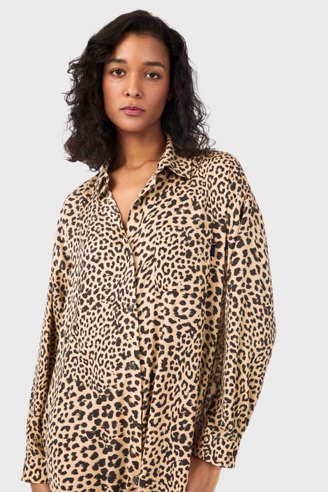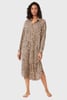Manhattan Chic hosszú hálóing a DKNY prémium márkától gyönyörűen simuló szaténból. Kényelmes, végig gombos szabása van oldalsó hasítékokkal, a hosszú ujjakat pedig mandzsetta zárja. Állatmintával díszített.