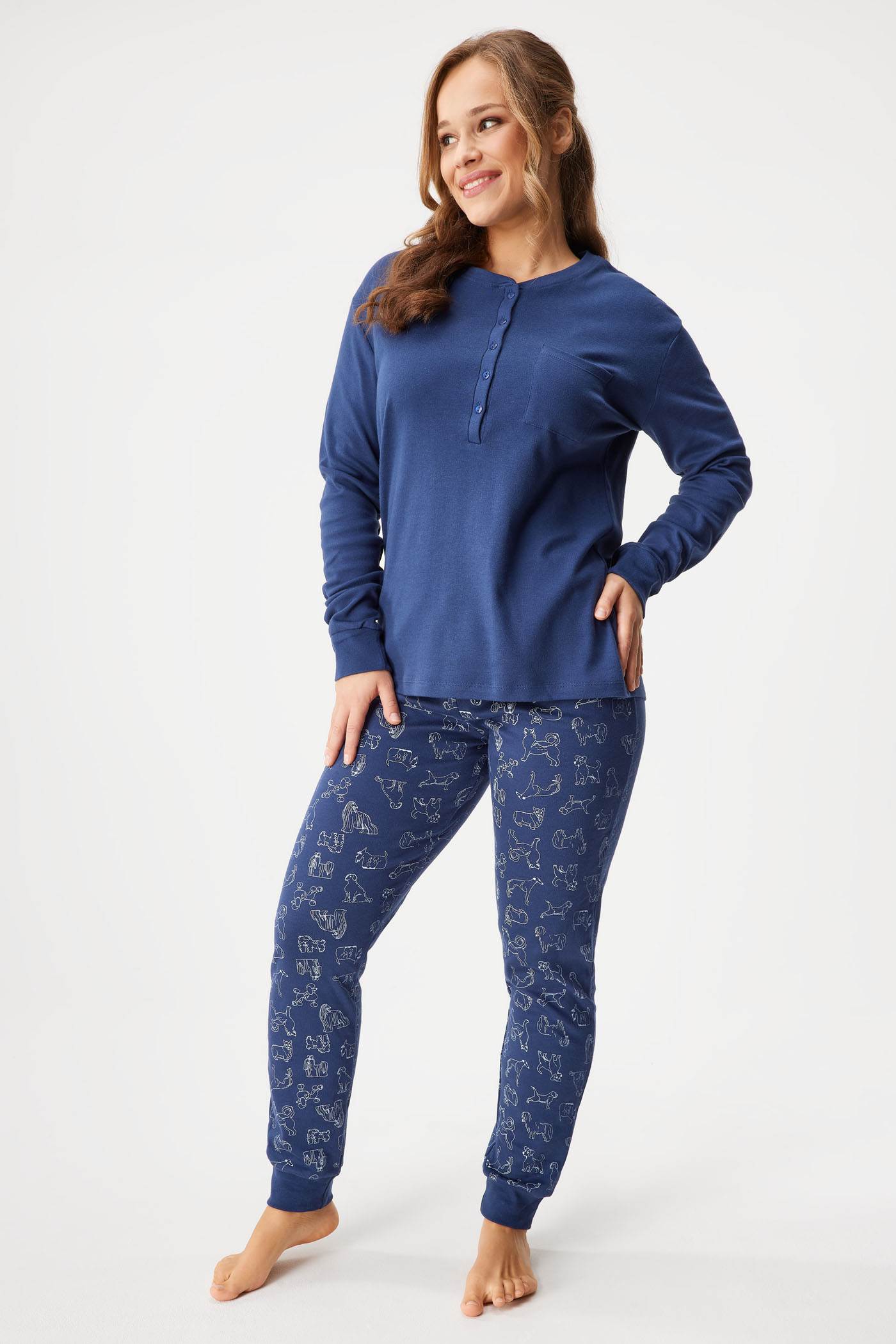 Dog Lover női pizsama 100%-os pamutból az éjszakai kényelemért. Bájos kutyás motívummal.