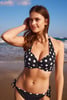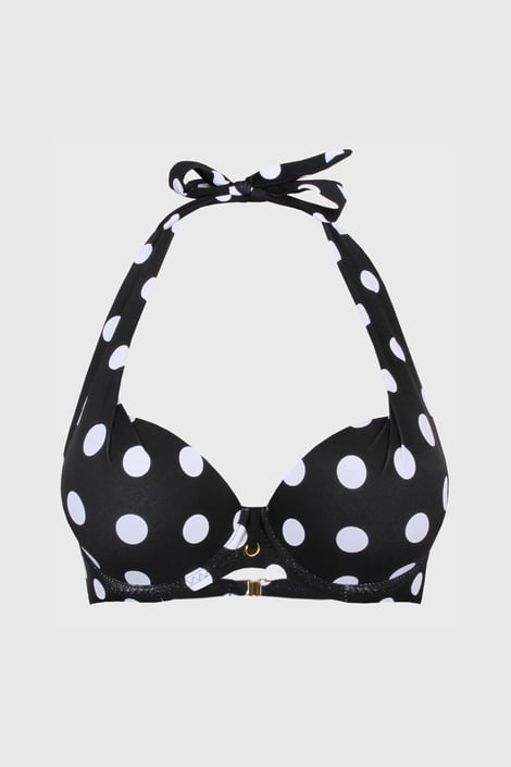 Ha telt dekoltázsra vágysz a strandon és a medencénél, a Push-Up hatású Dots bikinifelső egy jó választás. A puha anyaggal bélelt, gél betétekkel rendelkező kosarak kissé megemelik a kebleket és telt formát biztosítanak. A nyak mögött megkötős vállpántok is hozzájárulnak a szép dekoltázshoz.