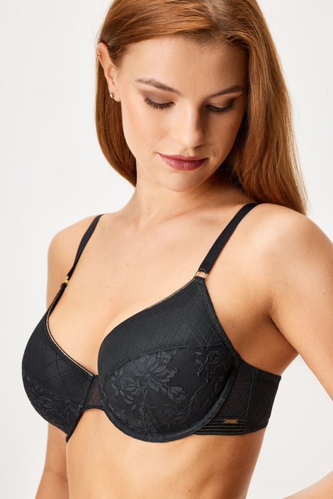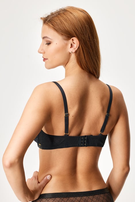 Dulcie bélelt melltartó, rendkívül puha kosarakkal. A kosarak felső része és az alsó pánt is decens csillogó szálakkal díszített.