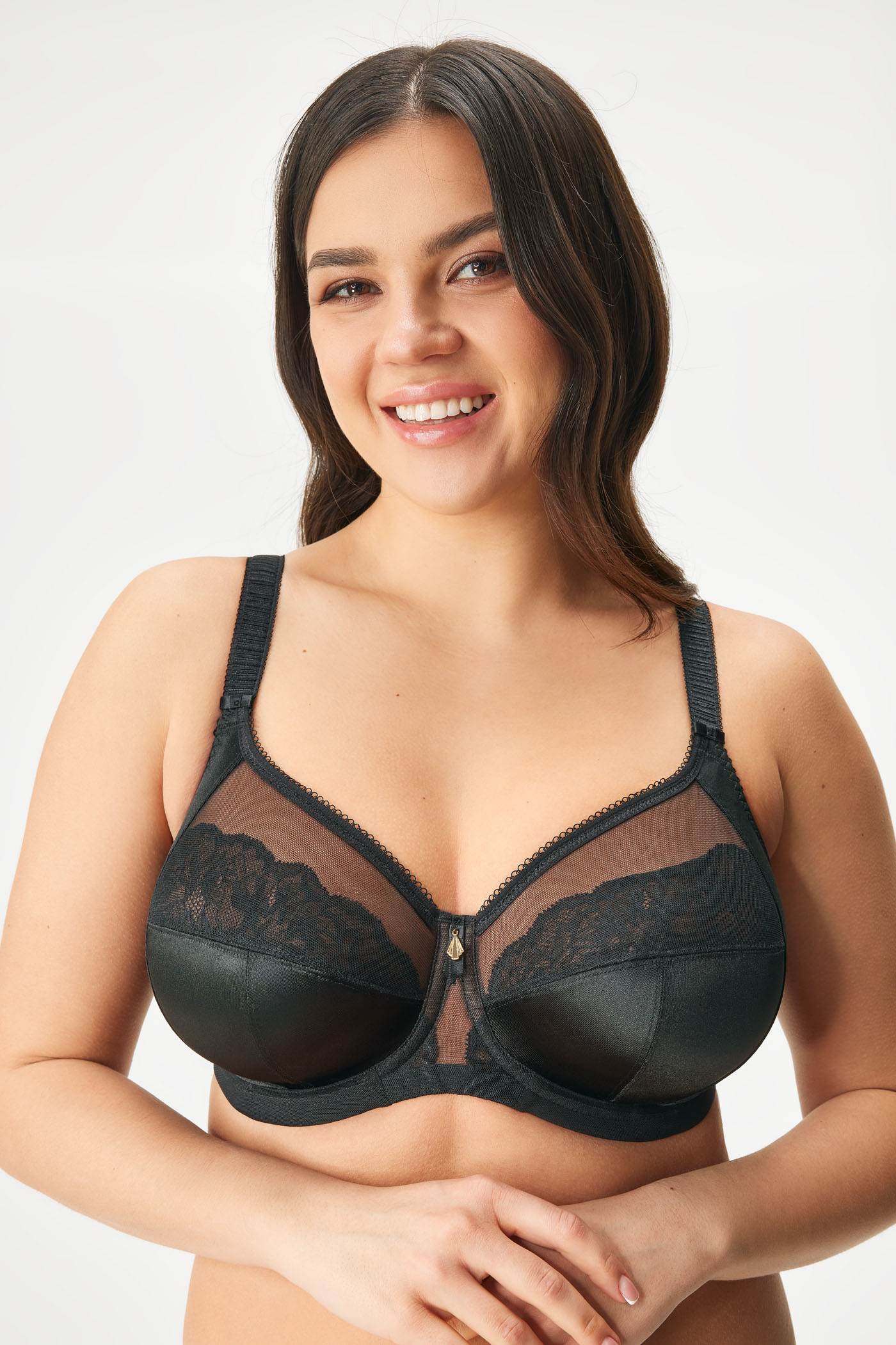 A bélés nélküli Elomi Cate Allure melltartó bizonyíték arra, hogy a telt vonalak számára készült fehérnemű is gyönyörű és elegáns lehet. Az erős anyagból készült kosarak alkalmazkodnak a mellekhez és kiváló támaszt biztosítanak, a magasabb középrész pedig gondoskodik arról, hogy a keblek mindenkor a helyükön maradjanak.