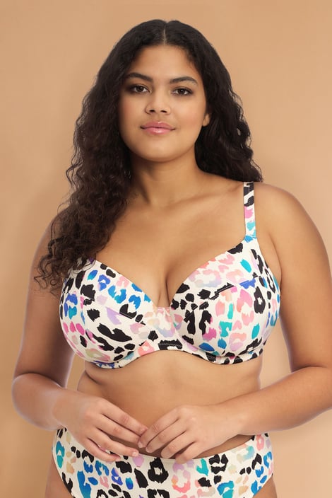 Az Elomi Party Bay bikinifelső strandon és medence mellett is támaszt nyújt a nagy kebleknek. Az erős fürdőruha anyagból készült kosarak megfelelő tartást biztosítanak, egy-egy oldalsó támasztó résznek köszönhetően a mellek közelebb kerülnek egymáshoz.