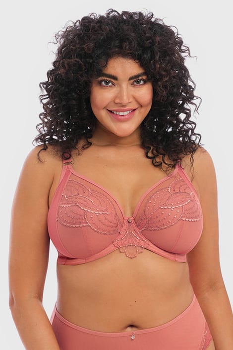 Elomi Priya Rose melltartó azok a hölgyek számára, akikhez a természet valóban bőkezű volt. A bélés nélküli, erős hálós anyagból készül kosarak megfelelő tartást adnak, és megőrzik a keblek természetes formáját. Az oldalsó támasztó részek és a magasabb középrész közelebb tartja egymáshoz a kebleket. Széles, selymes vállpántokkal.