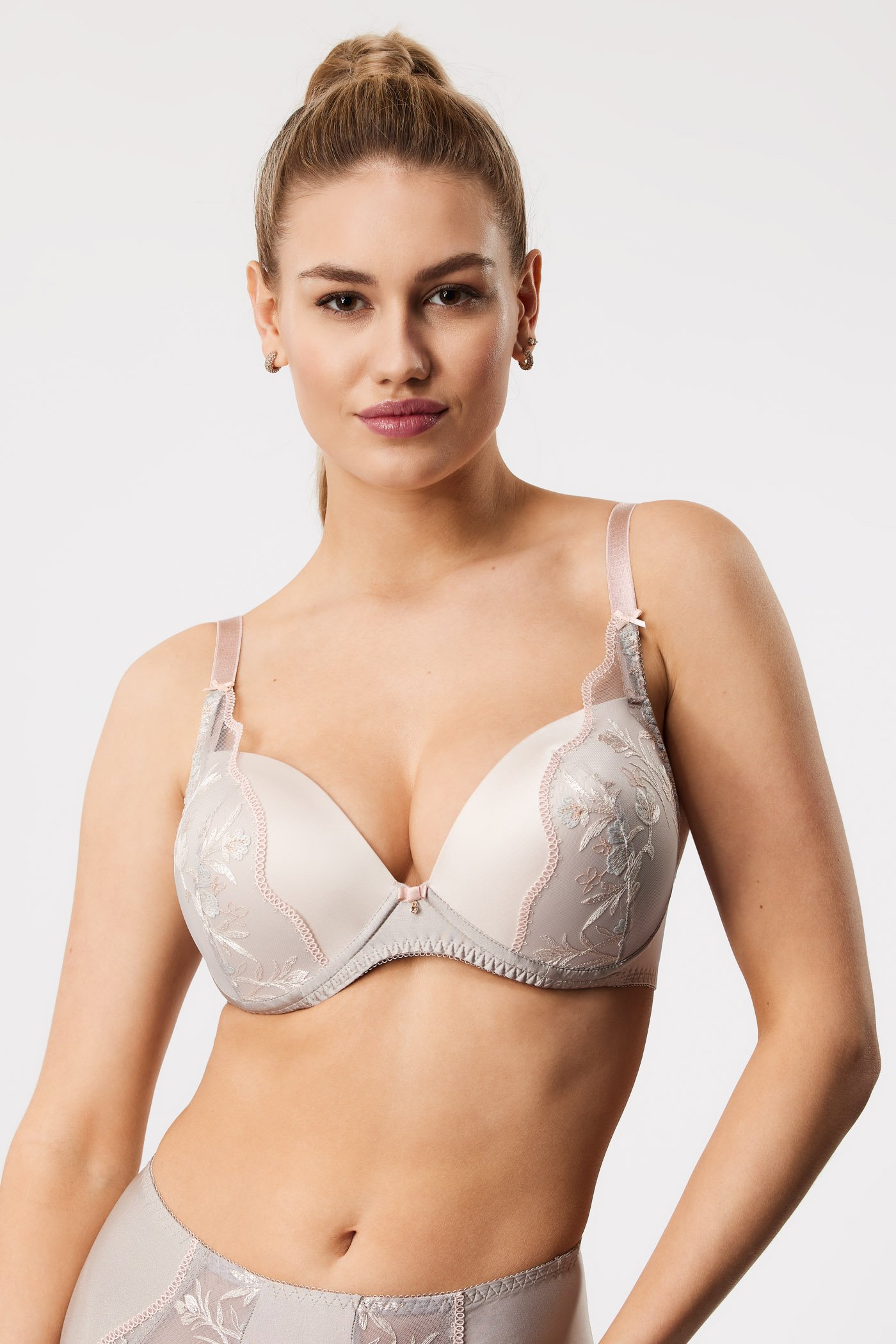 Az elegáns Evangelina Push-Up melltartó a kívánt volument adja a dekoltázsnak. Az alacsony középrész mélyebb dekoltázzsal rendelkező ruhákhoz is alkalmas. A modell hatásosan ötvözi a testszínű alapot és a hímzett tüllt aranyszínű részletekkel.