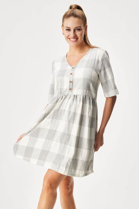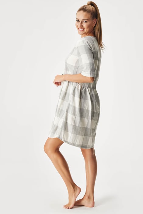 Farris szoptatós hálóing érintésre selymes, könnyed flanelből. Az apró gombok könnyen kezelhetők, hogy a szoptatás bármikor megoldható legyen. Decens csillogó szálakkal.