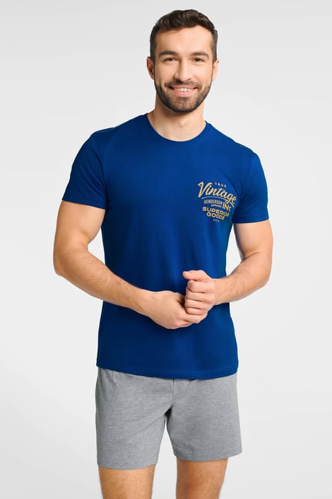 Fate férfi pizsama a kivételes éjszakai kényelemért. A rövid ujjú póló 100%-os pamutból készült, a bővebb sort pedig pamutból és viszkózból.