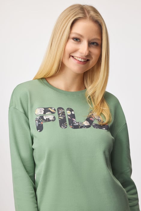 A FILA Sage női szett kényelmes darab az otthoni pihenéshez és az alváshoz. A lágy zöld árnyalatú pulóvert virágmintás nadrág egészíti ki.