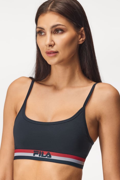 FILA Underwear Navy pamut sportmelltartó, merevítők nélküli komfortos kivitelben. Keblek alatt a márka logójával díszített széles gumival.