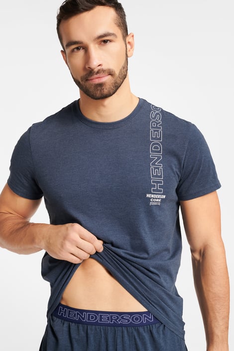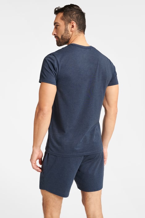 Válassz éjszakai kényelmet a Fleet pizsama formájában. A rövid ujjú póló decens felirattal díszített, a rövid pizsamanadrág egyszínű.