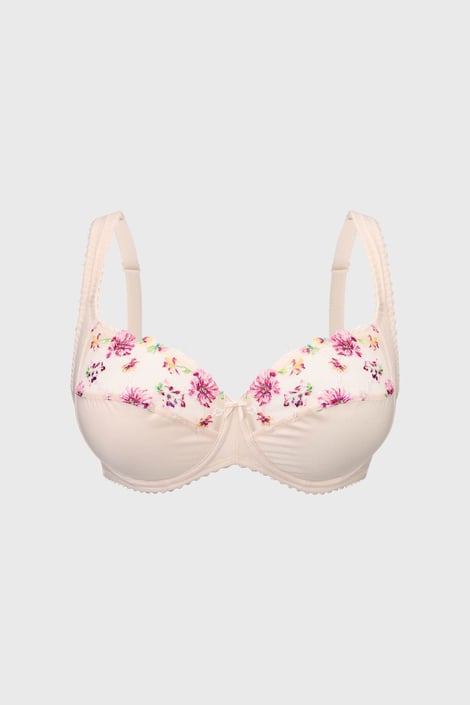 Floral Fantasy I melltartó romantikus virágos hímzéssel, amely nagyszerűen kitűnik a világos rózsaszín hálós anyagon. A bélés nélküli, merevítővel ellátott kosarai kényelmesen fedik a melleket, és segítenek, hogy kerekebbek legyenek. Az Astratex műhelyéből.