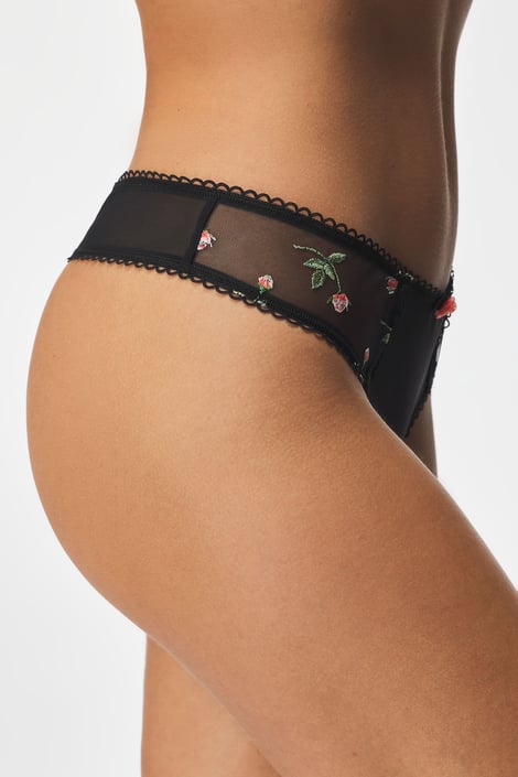 A tanga szabású Freya Rose blossom női alsó csodás formát biztosít a popsidnak. Elülső oldalon romantikus virágmintás hímzéssel díszítve, hátoldalon áttetsző tüll és érzéki fűzés különleges kombinációja.