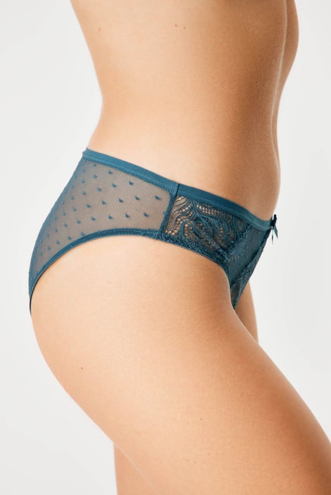 Gently Peafrowl klasszikus szabású női alsó, finom mintás csipkéből és selymes hálós anyagból. A klasszikus fazon minden testalkatnak jól áll.