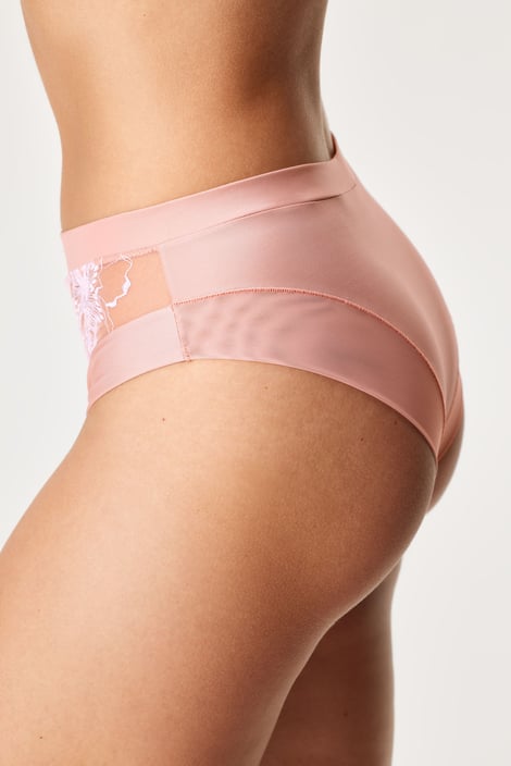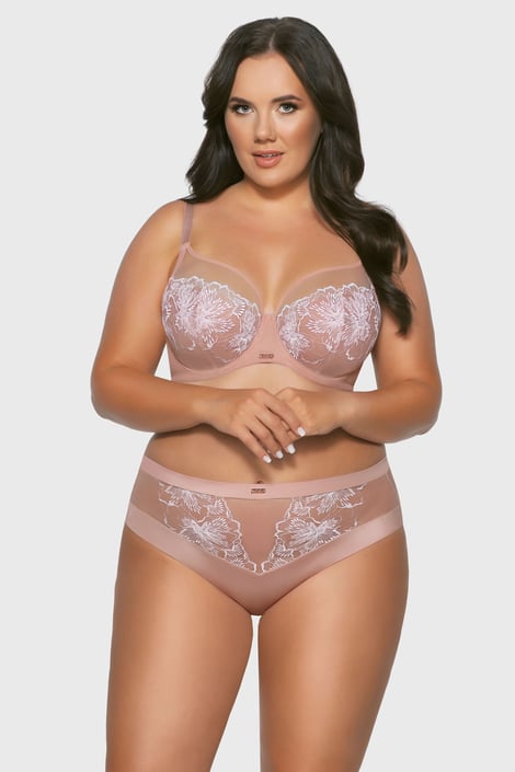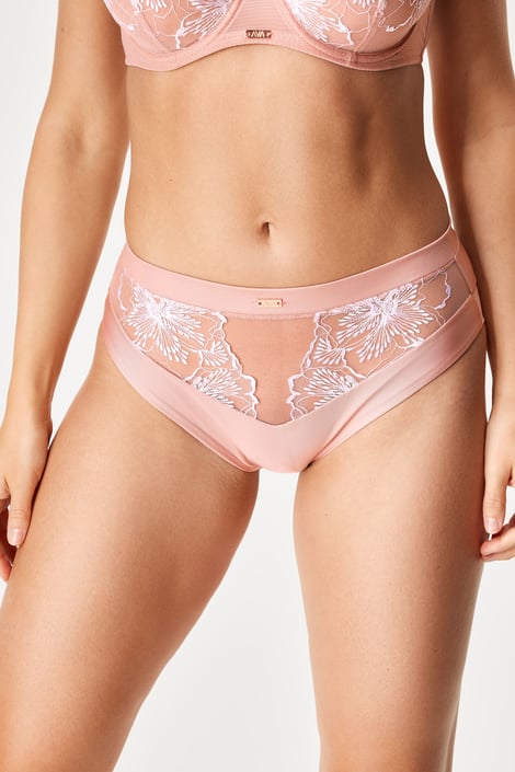 Gloria Rose klasszikus szabású női alsó magas derékrésszel, a finom rózsaszín és gyengéd hímzés kombinációjában.