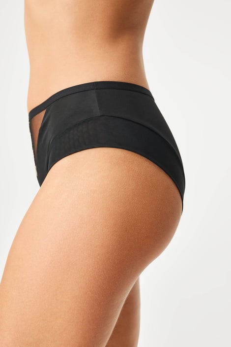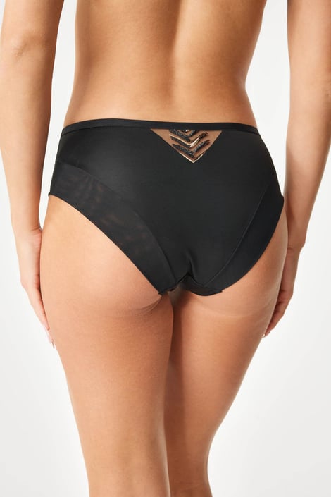 A klasszikus Goddess mikroszálas bugyit finom hálós anyag egészíti ki a lábrészen, valamint az elülső és hátsó slicceken. Ezeket ráadásul arany és ezüst hímzések is díszítik. Az ék pamuttal van megerősítve az extra komfort érdekében.