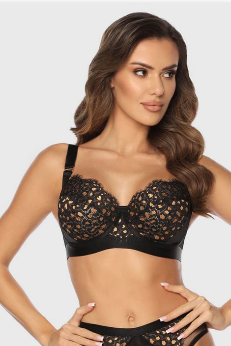 A Goldie Wild melltartó állatmintás csipkébe öltözteti kebleid. A csipke finomsága kiválóan érvényesül a széles pántok kontrasztjával, melyek a vállpántokhoz kapcsolódnak.