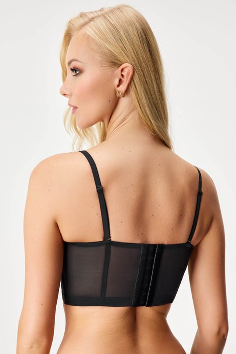 Gossard Rebel luxus melltartót minden bátor nő értékeli majd, és minden mellméretnek jól áll. A fűző szabás oldalsó- és középső merevítőkkel megerősített, a melltartó vállpántok nélkül is viselhető. A bélés nélküli, egy-egy függőleges varrással készült kosarak gömbölyítik a melleket. Az elülső oldali csipke minden kivágásban jól mutat.