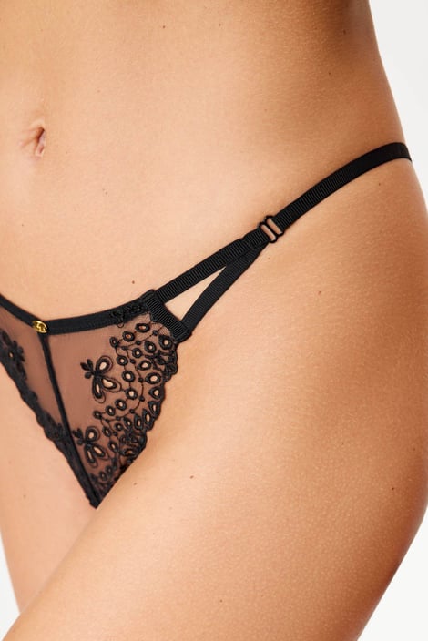 Gossard Rebel minimalista tanga, luxus csipkés kivitelben. Rafinált kivágásokkal és hátoldalon fém részlettel az érzéki nők számára. Kerekded vonalakkal rendelkező hölgyek számára is alkalmas.