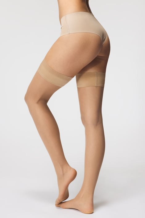 Grace öntapadós harisnya egyszerű kivitelben. A fényes felső perem belső oldala szilikoncsíkot rejt.