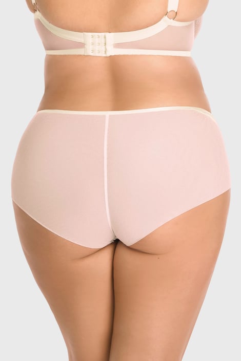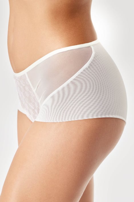 Hanna Soft klasszikus szabású női alsó, gyengéd csipkéből és kissé áttetsző hálós anyagból. A magasabb fazon kellemes viselet, kevésbé feszes hasnak is megfelelő tartást biztosít.