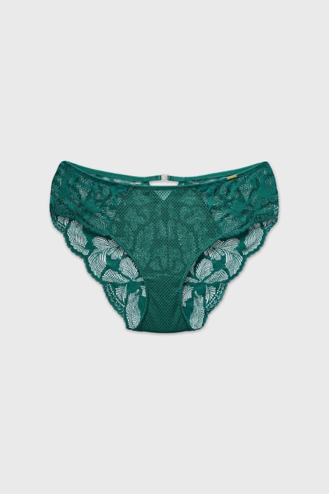 Hayden klasszikus bugyi a csipke és a finom hálós anyag elegáns kombinációjával. Hatásos petróleumzöld színben.