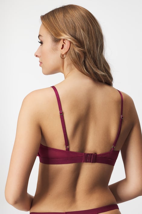 HUGO Triangle Velvet bársonyosan selymes melltartó, körkerületen és keblek között finom hálós anyaggal kombinálva. A prémium márka elegáns terméke.