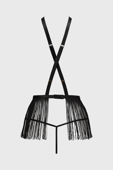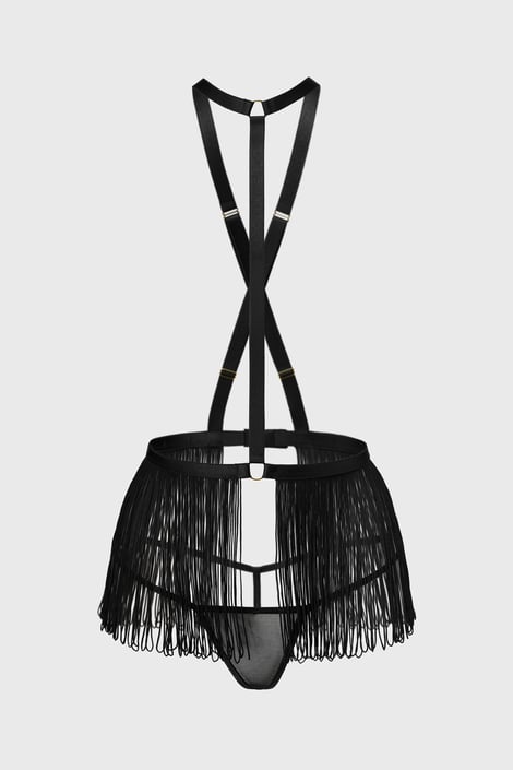Fűszerezd meg a csábítás pillanatait Indra erotikus szettel, amely tökéletesen kihangsúlyozza nőiességed! Keskeny elasztikus pántokból és díszrojtokból készült, melyek decens módon eltakarják a csípőt.