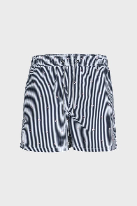 JACK AND JONES Fiji Stripes férfi fürdősort, a decens csíkok és nyári minta kombinációjában. A sort belső oldalon finom hálós anyaggal bélelt, amely a férfi intim testrészeknek megfelelő kényelmet biztosít. Derékban húzózsinórral.